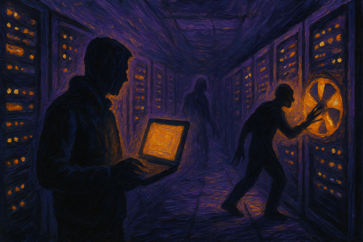 Полночь. «Пять минут» в ЦОДе затянулись: дверь хлопнула, турникет встал, гул серверов исчез. Индикатор мигнул: «ТЕСТ НА ВЫЖИВАНИЕ». Осталось найти выход… если сможешь.